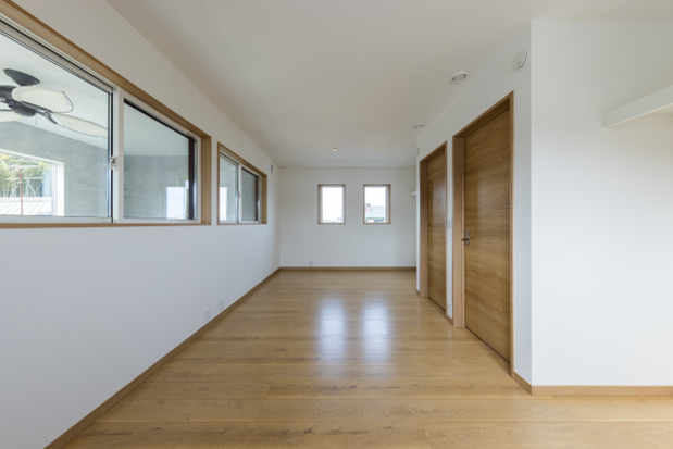 室内は、広いLDKと機能的な和室。日常の動線に沿った使いやすいプランであると同時にテラススペースのような豊かな空間もある。
