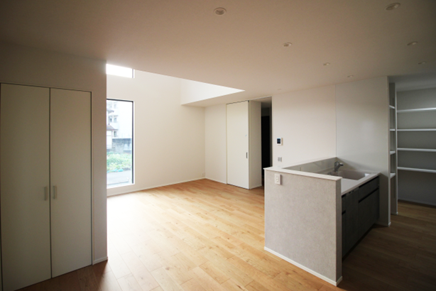 高い場所からの光がLDK全体に行き渡る
