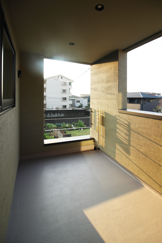 この家のシンボルは2階から1階まで伸びた窓です。