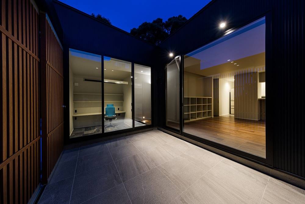 リビングと書斎をテラスでつなぐ