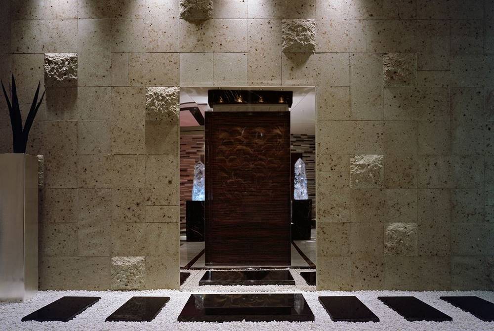 お出向えの玄関は石に表情をつけ演出する