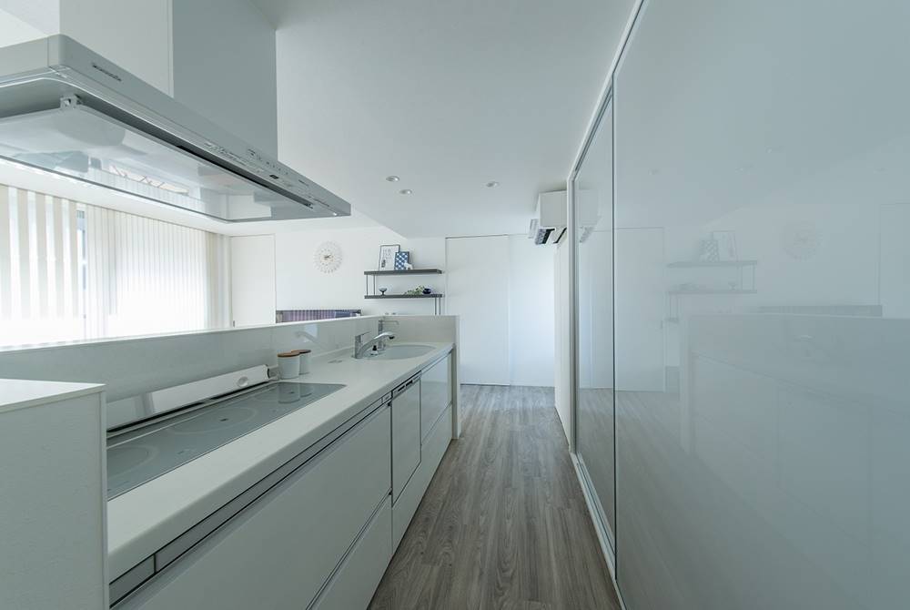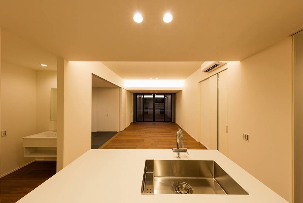 キッチンから洗面室まで一直線のスムーズな水廻り