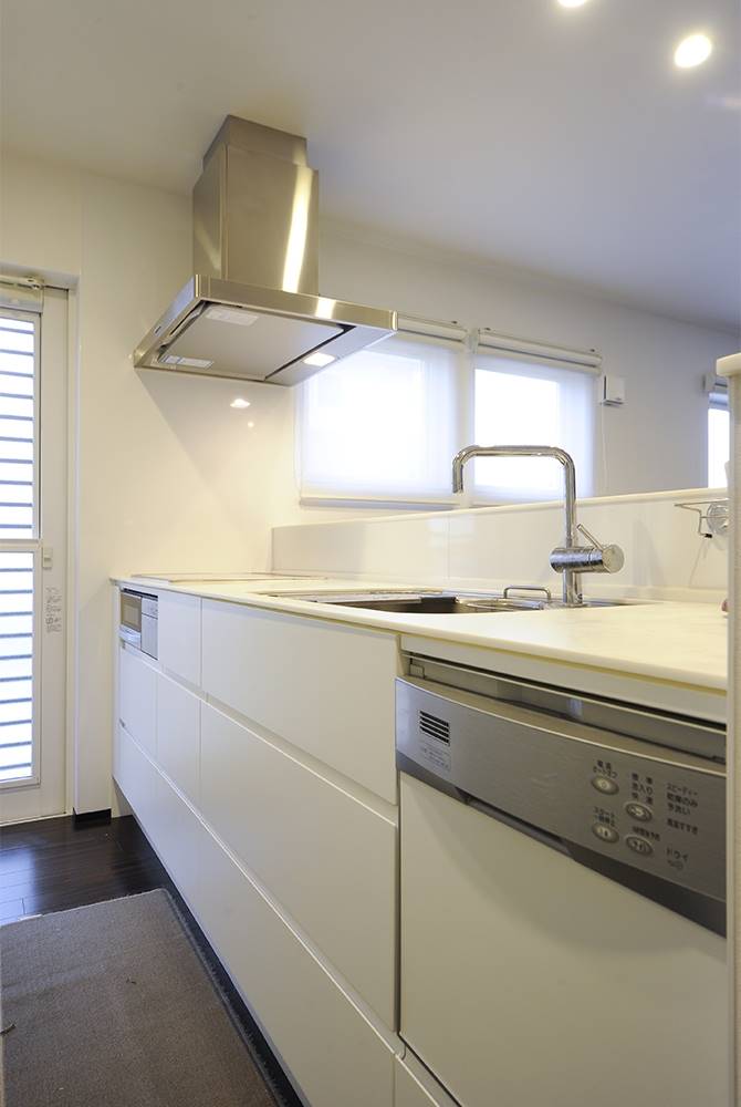 私は、階段とリビングを別にしたかったんです。階段の上り下りの音が気になりますし、くつろぐ空間を大事にしたいなと。吹き抜けにしてしまうと空調費が余計にかかりますしね。それと、下駄箱、キッチン、トイレなど、全体的にものを隠すスペースが欲しいと思っていました。収納スペースはしっかり確保しましたし、日常使うトイレットペーパーまで収納しているんですよ。とにかく、シンプルなつくりにしたかったですね。それと、私は車が大好きなので、ビルトインガレージが欲しかったんです。ところが最初、妻が「そこまで要らないんじゃない? カーポートで十分だと思うよ」と反対し、カットされかけたんですが、結果残してもらいました。いざ使ってみると、雨の日も濡れずに車に乗り込めますし、荷物が多いときもとても便利。妻も今では、「造って良かったね」と言っています。