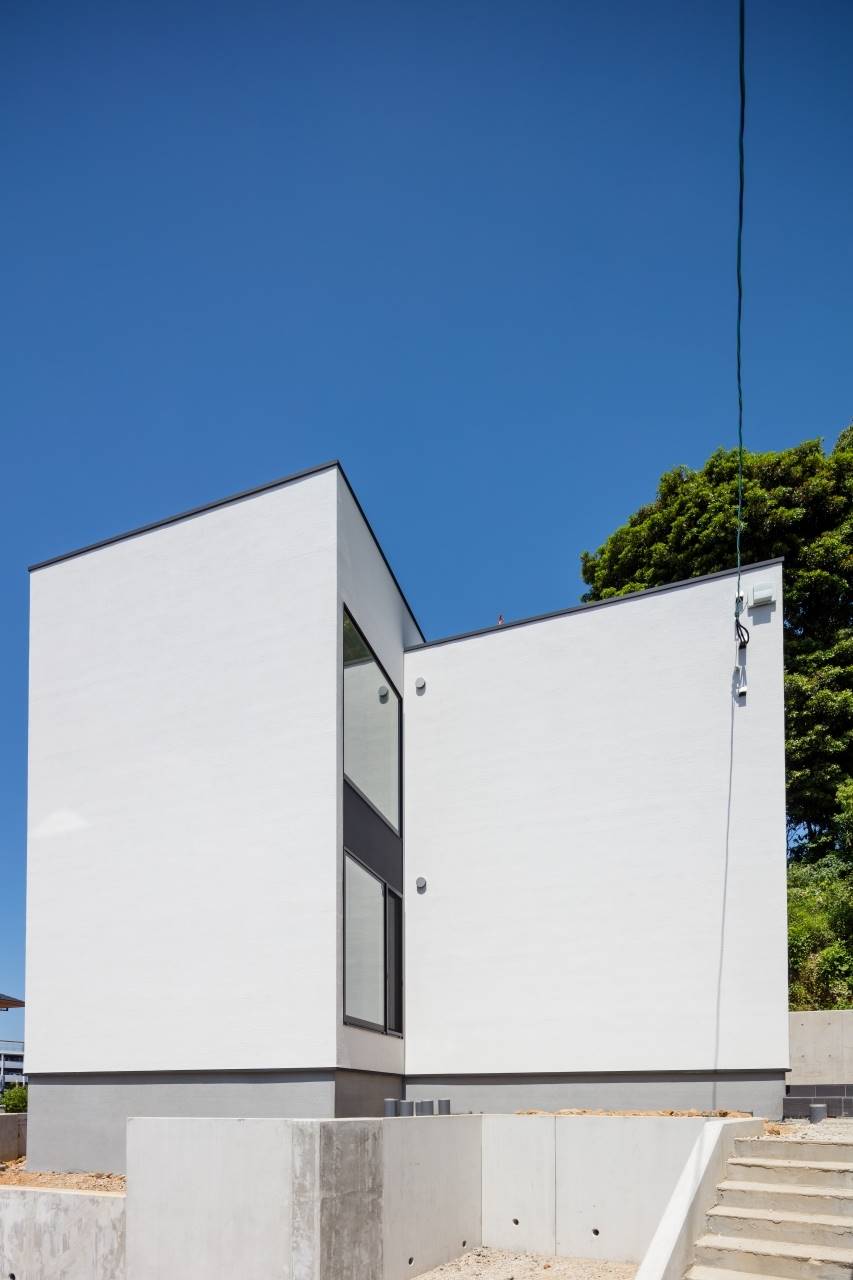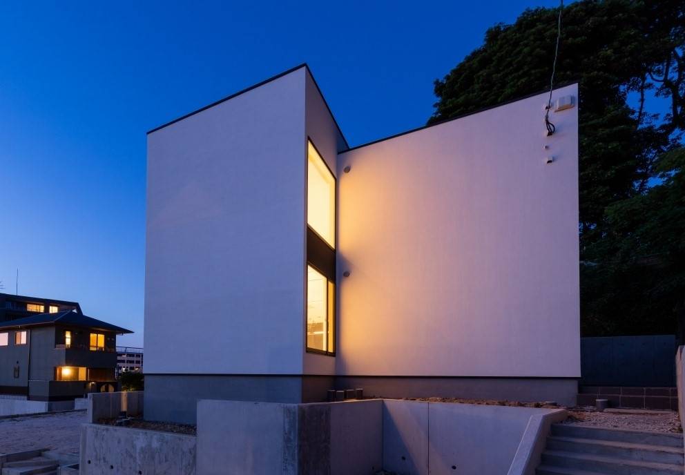 窓は、家にとってとても重要なものの一つです。窓には光を入れること、風を入れることとは別にもう一つ、家の印象を決めてしまうという性質があります。設計士も窓の配置にはとても気をつかいます。しかし、それだけに外観や、環境と調和した窓は、家のシンボルそのものになります。そんな窓を大胆かつ、美しく切り取った夜輝く住まいです。