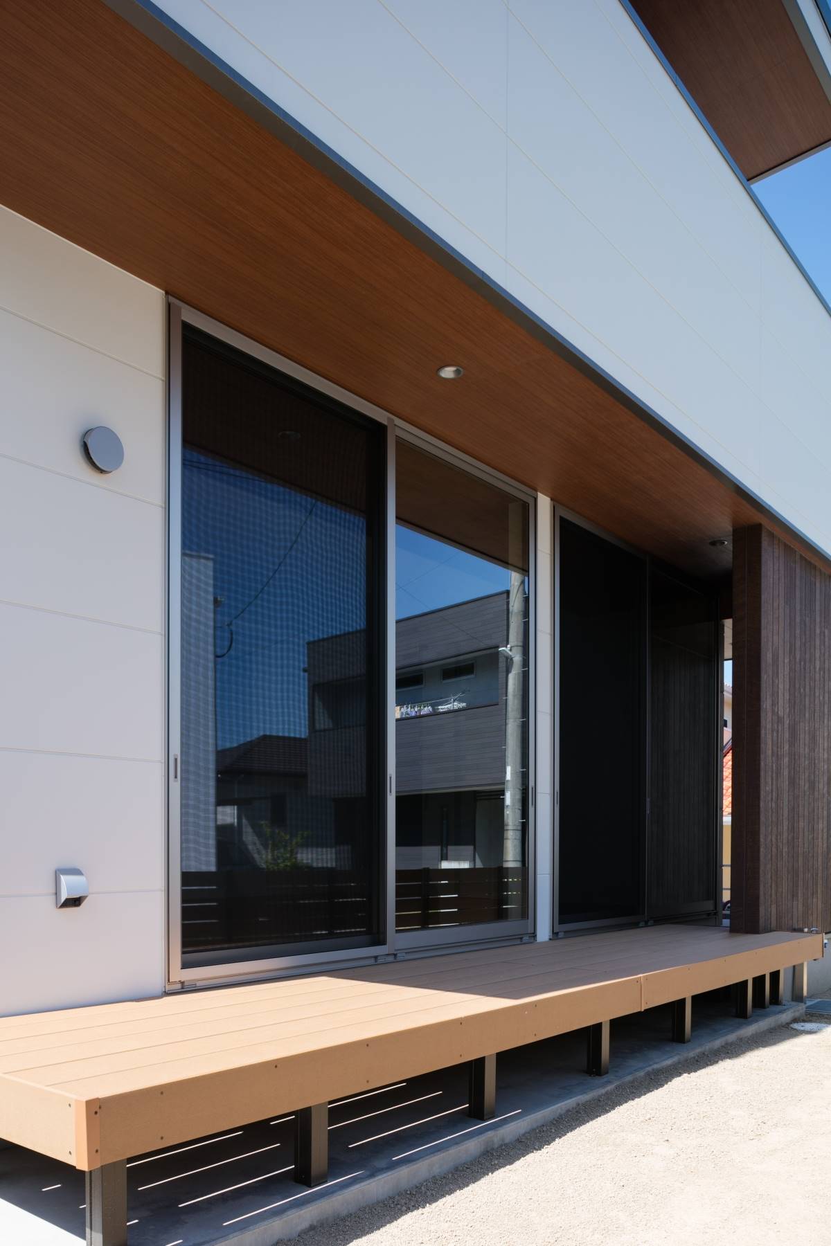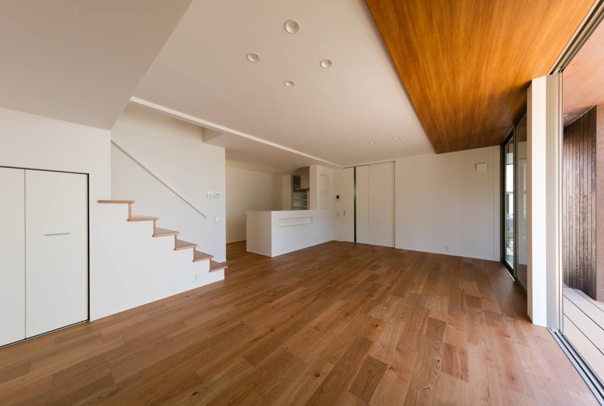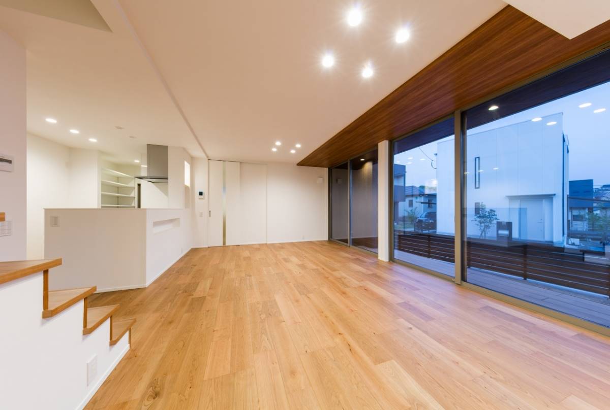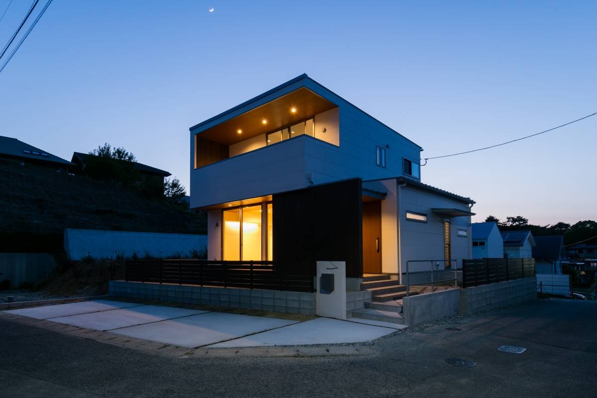 大きな四角が2つ重なったような外観の住まい。2階のバルコニーの大きな開口がダイナミックな印象を与えますが、住まいは31坪と意外とコンパクト。しかしその中には、様々な充実の設備・プランが無駄なく組み込まれています。ウッドデッキ、3帖のウォークインクローゼット、シューズクローク、パントリー、4.5帖のフリースペース、1621サイズのお風呂、床暖房、7帖近いバルコニー。その全てを叶えながら、無駄を排除して贅沢にコンパクトに暮らす家。豊かに暮らすことと、ものの合理性が共存すたハイブリットな住まいです。