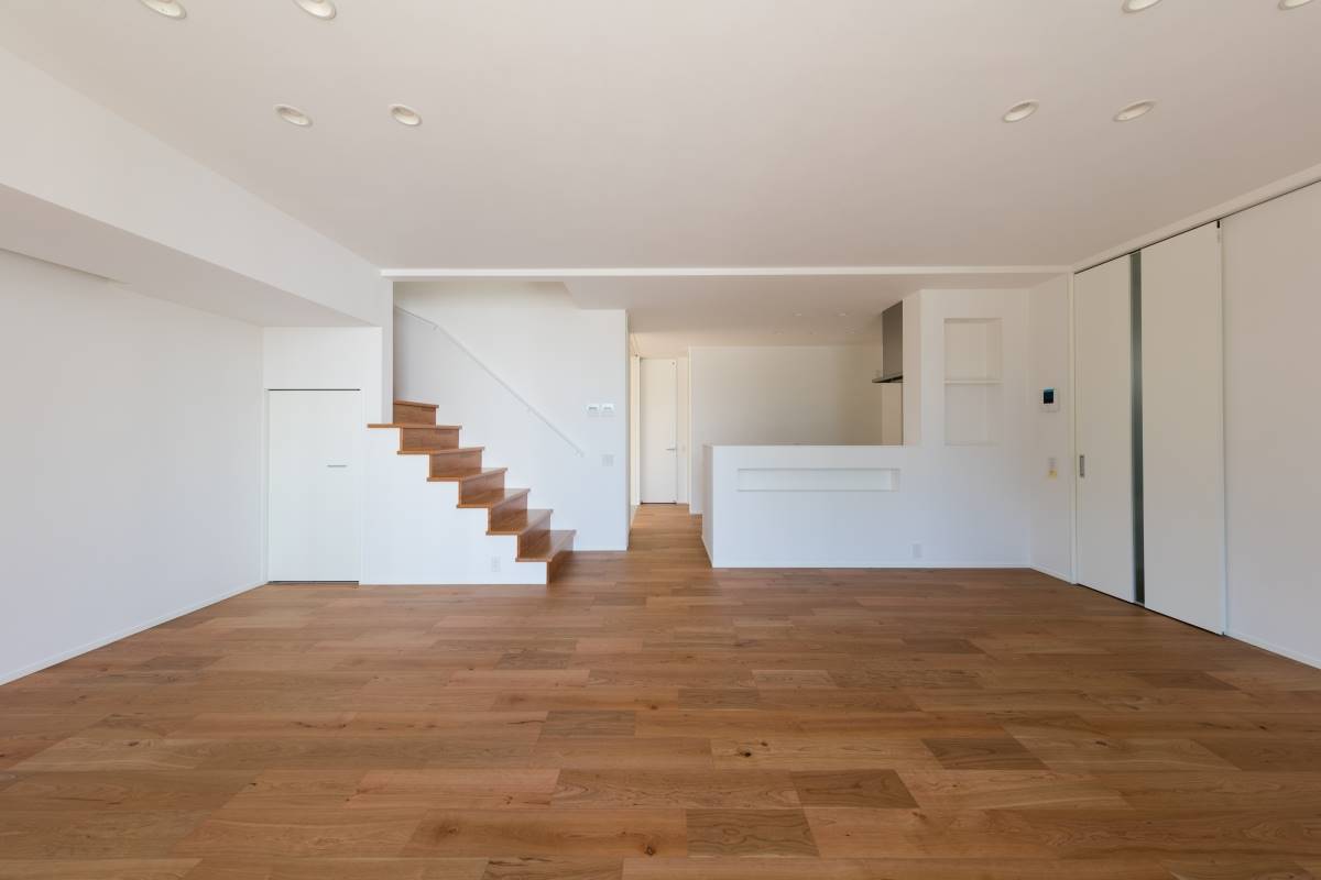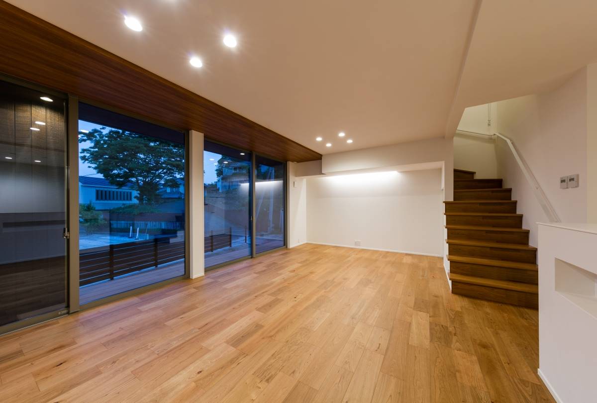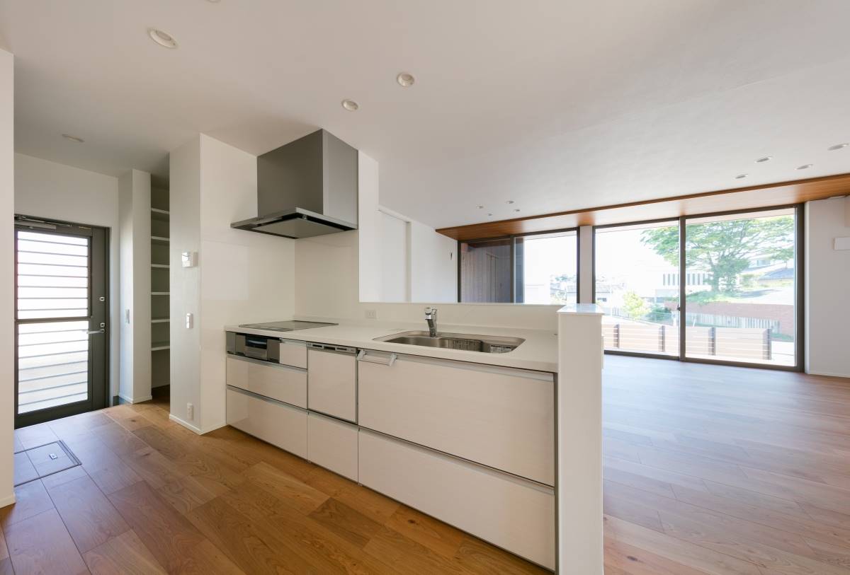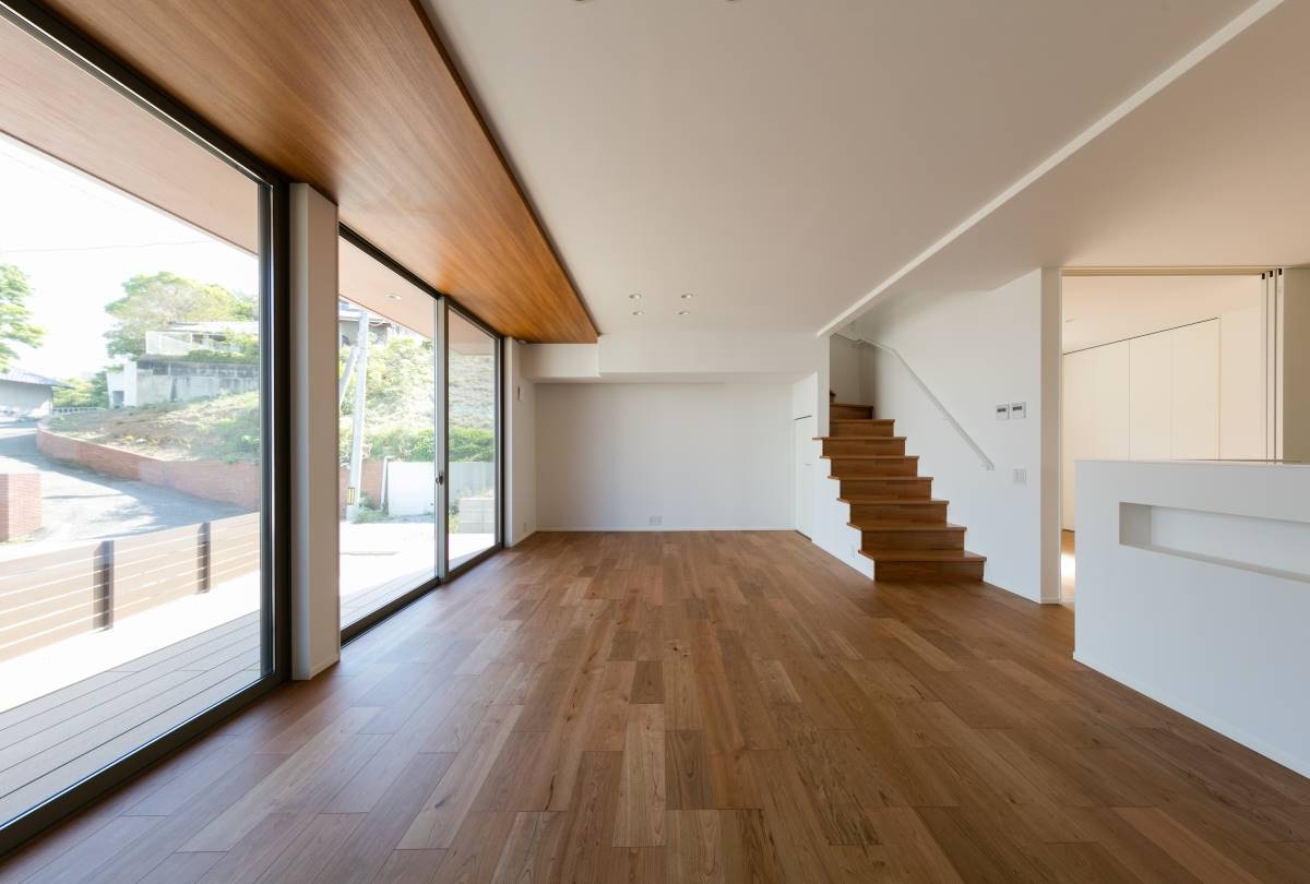 大きな四角が2つ重なったような外観の住まい。2階のバルコニーの大きな開口がダイナミックな印象を与えますが、住まいは31坪と意外とコンパクト。しかしその中には、様々な充実の設備・プランが無駄なく組み込まれています。ウッドデッキ、3帖のウォークインクローゼット、シューズクローク、パントリー、4.5帖のフリースペース、1621サイズのお風呂、床暖房、7帖近いバルコニー。その全てを叶えながら、無駄を排除して贅沢にコンパクトに暮らす家。豊かに暮らすことと、ものの合理性が共存すたハイブリットな住まいです。